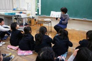 2月4日(月)、篠山ストーリーテリングの会の方にお話会をしていただきました。今回が今年度最後のお話会です。毎回、子どもたちの興味関心がわくような絵本や物語を選んでくださり、楽しく読み聞かせをしていただきました。お話会で知った本を図書室で借りる子もおり、子どもたちの読書活動が豊かになったと感じます。最後に感謝の気持ちをこめて、学校で育てたサイネリアの花を渡し、お礼を伝えました。1年間お世話になり、ありがとうございました。