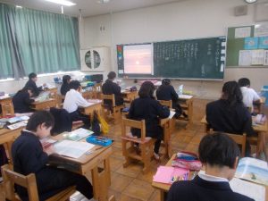 まずは、水平線の詩を自分でイメージしながら聞き、詩を視写しました。始めは、水平線がイメージできませんでしたが、写真を何枚か見ることでイメージできました。最後に自分がイメージした水平線の絵をノートに描きました。完成した絵は、一人ひとり、個性豊かな水平線でした。(4年生)