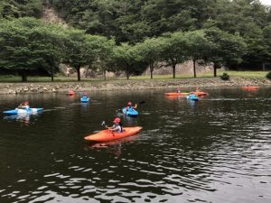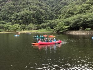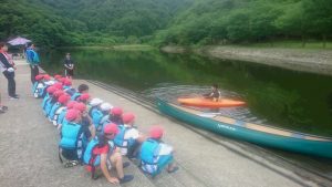 午後からはカヌーとカヤックに挑戦!はじめは怖そうに漕いでいましたが、慣れるにつれて上手にパドルを操りスムーズに進めていました。