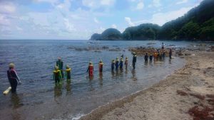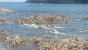 自然学校3日目 スノーケル 2019年6月12日 に takihp_mng が投稿 3日目の午前、竹野でスノーケルを体験しました。ウェットスーツ、足フィンをつけて、スノーケルを楽しみました。天候にも恵まれ、海の中の魚や生き物をたくさん見ることができました。