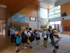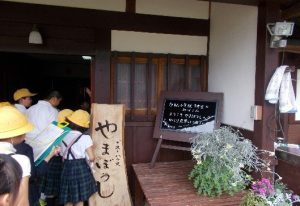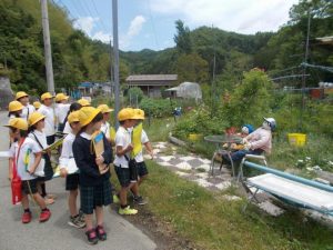 5月29日(水)、今度は、多紀めぐり~大芋方面~に行きました。藤坂の春日神社、なかの里、旧大芋小、古民家ゲストハウス「やまぼうし」、 みくまりダム、小倉の硅石、市野々の八幡神社、赤門、かかしの里を見学しました。今回も、地域のみなさまにお世話になって、貴重な学習をすることができました。