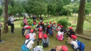 5日目、昼食をいただきアスレチックでしばらく遊んだ後、自然学校の閉校式を行いました。5日間お世話になった指導員さん、救急員さんにお礼の色紙を渡しました。自然学校で学んだたくさんのことをこれからの学習や生活に生かしていきたいです。