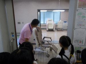 7月11日(木)、総合的な学習の時間「ふるさと多紀を知ろう~多紀めぐり~」で、「東雲診療所」に続いて、村雲地区にある「篠山東デイサービスセンター」を見学させていただきました。いろいろな部屋や設備を案内していただいたり、グループホームの方と一緒に「かえるのうた」を歌ったり、利用者の方とお話しさせていただいたりしました。デイサービスの職員の方々、利用者のみなさんにお世話になりました。ありがとうございました。(3年生)