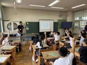 丹波篠山市上下水道課の方々の出前授業を受講しました。わたしたちの生活に欠かせない水の学習を4年生の社会で学びます。どのように水が作られて、また、使った水はどのようになるかを知りました。いつまでもきれいな水であるために、節水することやできるだけ汚れを出さない工夫が必要であることを学びました。