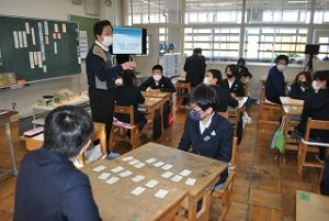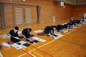 1月12日に校内の書き初め大会がありました。画仙紙に「美しい空」と書きました。練習でがんばった成果が表れているように感じます。また、同日にゲストティーチャーをお招きして、百人一首についての学習もしました。対戦になるとたいへん集中して取り組むことができました。