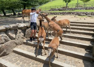 奈良公園についたら鹿も外国人も多くてびっくりしました。