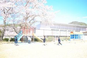 校庭の桜は今、まさに満開を迎え、時折吹く春風に誘われて花びらが舞い始めています。この佳き日に、子供たちは新しい年度への期待を胸に、元気に登校してきました。