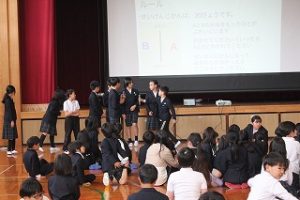 4月27日(月)、全校生で「1年生を迎える会」を開催しました。
