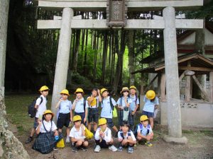 生活科の校区探検で、大芋地区(みくまりダム、大蜘蛛伝説のある八幡神社、泊まれる学校おくも村)へ行きました。「みくまりって何?」「ダムって何?」「何で大芋小学校は残っているの?」など、様々な疑問を持って探検に出かけた2年生。それぞれの場所にあった看板や地域の人の話から、疑問を解決したり、新しい発見をしたりしました。
