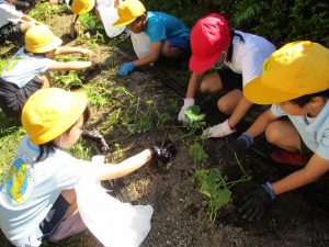 1・2年生で、さつまいも堀りをしました。さつまいもを傷つけないよう、慎重に掘っていくと、色んな大きさや形のさつまいもを発見!みんなで協力してたくさんのさつまいもを収穫することができました。収穫したさつまいもは、1・2年生で調理して食べる予定です。どのようにして食べるのか今から想像が膨らんでいました。
