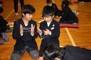 10日(水)の3時間目に、たきこども園のばら組(年長さん)と交流しました。今回は、冬のお楽しみ会のリハーサルを楽しく鑑賞し、ばら組メンバー作成の「石の研究所博物館」を見学しました。最後に石のプレゼントをもらい、1年生からは、「うれしかった。」「面白かった!」「すごいって思った。」などの感想が出ていました。