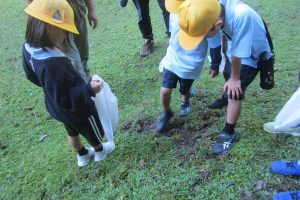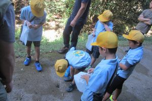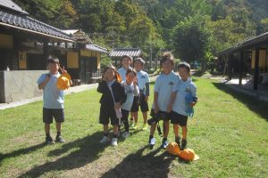 みんなが楽しみにしていたささやまの森公園での秋探し。秋は、木の葉が色づき、木の実がなり、動物たちも冬に向けて動き出す季節です。今回は、いろいろな種類のどんぐりを拾ったり、アケビの形にびっくりしたり、オニグルミの実を食べてみたり、と多くの体験をしました。エサを探しまわる動物たちの糞も多くあり、自然豊かな森で多くのことを学んだ1時間でした。