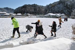 1月24日~25日にかけて、多紀小学校が臨時休校になるくらいの雪が降りました。休校明けの26日には、朝の気温はマイナス10度より下回っていました。しかし、4年生は寒さに負けず、約1時間も雪合戦を楽しみました。最近では、めったにない体験だったので、みんな夢中でした。